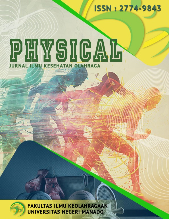 Physical: Jurnal Ilmu Kesehatan Olahraga merupakan jurnal ilmiah yang dikelola oleh Program Studi Ilmu Keolahragaan, Fakultas Ilmu Keolahragaan dan Kesehatan Masyarakat (FIKKM), Universitas Negeri Manado. Jurnal ini mempublikasikan artikel ilmiah yang berfokus pada bidang kesehatan olahraga, yang mencakup fisiologi olahraga, ilmu kepelatihan, kebugaran jasmani, nutrisi olahraga, pendidikan jasmani, serta penelitian terapan dalam aktivitas fisik dan olahraga.